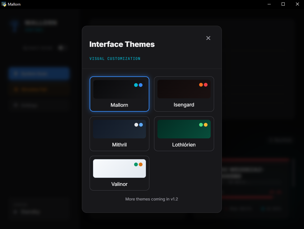 Native desktop experience with theming support (Mallorn, Isengard, Valinor).